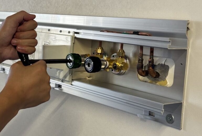 ポンプの水槽内清掃は基本的には水面計の窓から行うため、手を大きく動かすことが出来ず清掃作業に時間を要しましたが、最後に排水確認をしたところ、なんとか通常どおりの排水量まで回復させることが出来ました。取り外して清掃した配管や水面計を元に戻して試運転を行い、所定の時間内に無事作業を完了させることが出来ました。