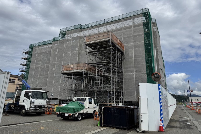 増築棟工事現場の1Fの様子です。本工事現場に限らず1Fは揚重待ちの資材置き場などになるケースが多く、こちらの現場も御多分に漏れずといったところ。医療ガス設備は2Fのみとなっています。